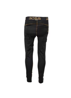 Sleek Black and Olympic gold, these are fitted pants with silicone around the inner waist and on the shins for additional grip. There is a integrated jock cup included along with velcro tabs for hockey socks. 4 ways stretch compression.Â